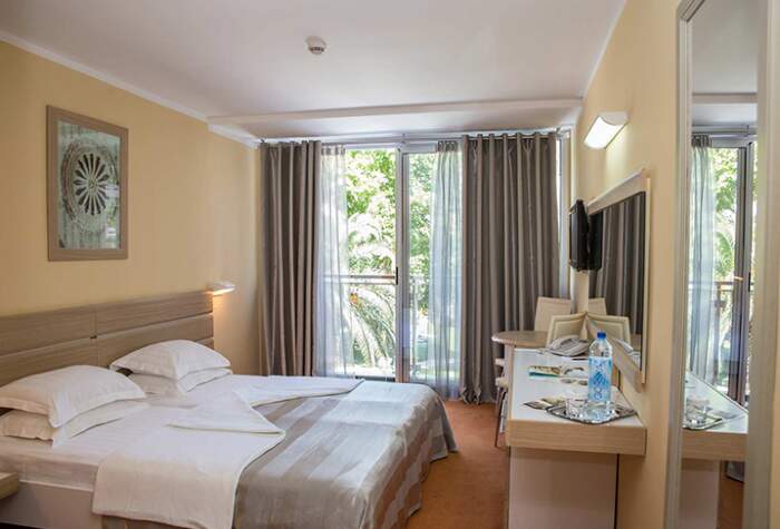 Budvan kaupungissa, Be?i?in kaupungin osassa sijaitseva rantahotelli. Budvan keskustaan noin 2km.