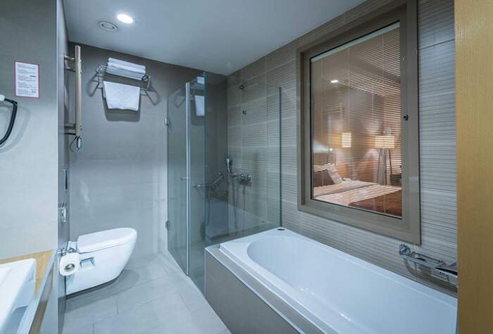 Hotellissa ravintola, baari,kuntosali ja spa-osasto