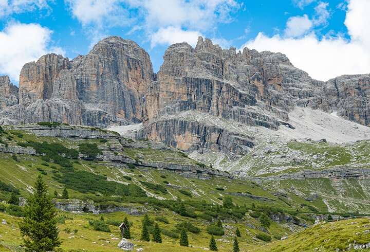 Lähdemme kohti pohjoista, mahdollisuuksien mukaan ajamme ns. vuoristotietä nr 42 ohi Adamello-vuoriryhmän, maisemat reitillä ovat ikimuistoiset! Joka puolella huikeita vuorenhuippuja, joiden välistä häämöttää alppijärviä ja metsikön keskellä iloisesti solisevia pikkupuroja. Dolomiittien uhkeat kuusi- ja mäntymetsät ovat vertaansa vailla. Luonnonihmeet ovat loputtomat; alkukesästä syksyyn täällä kukkivat erilaiset kukat, aina alppiruususta kulleroihin asti. Eläinkantaa edustavat vuorikauriit, viheltelevät murmelit ym. pikkueläimet.
