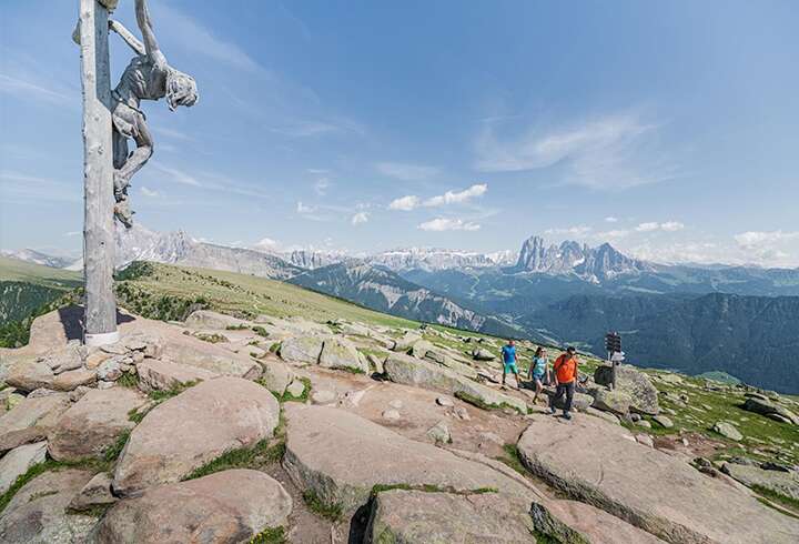 Lähtö hotellilta Ortisein keskustassa sijaitsevalle hissille. Nousemme 2100 m korkeuteen ja teemme alueella ympyrälenkin. Matkan varrelle osuu Heilig Kreuz kappeli sekä näköalapaikka. Tämän jälkeen palaamme takaisin yläasemalle ja tulemme hissillä alas.