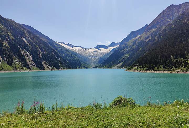 Viikon huipennukseksi olemme säästäneet Zillertalin komeimman patikkareitin. Aamumme alkaa bussimatkalla Schlegeis-tekojärvelle. Järveltä lähdemme nousemaan hyväkuntoista, mutta jyrkähköä metsäpolkua kohti Olperer-tupaa. Maisemat tekojärven ja sen takaisiin Hochfeiler- (3509 m) ja Grosser Möseler- (3479 m) vuorten suuntaan paranevat jokaisella nousumetrillä ja pian olemmekin jo alppiniityllä, josta on enää vähän nousua jäljellä. 600 nousumetrin jälkeen olemme saavuttaneet määränpäämme, Olpererhütten tuvan, jonne jäämme omakustanteiselle lounastauolle. Viiden minuutin kävelymatkan päässä on myös Olpererhütten riippusilta, yksi komeimmista maisemapaikoista Itävallassa. Mutta saadakseen kuvan itsestään kannattaa valmistautua jonottamaan jonkin aikaa. Tauon vietettyämme palaamme samaa reittiä takaisin Schlegeis tekojärvelle, jossa bussia odottaessaan voi käydä pulahtamassa. Tekojärven vedet virtaavat suoraan edessä näkyvältä jäätiköltä, joten virkistävä veden lämpötila on taattu.