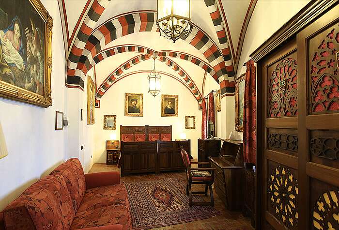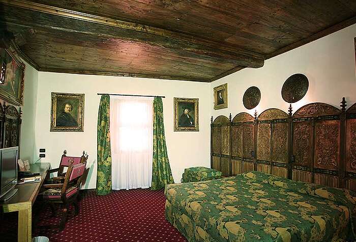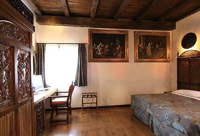 Hotellissa on ravintola, juhlasaleja ja kauniita huoneita, joissa on uniikkeja piirteitä, kuten kattokruunut, maalaukset, haarniskat, taulut ja puiset kattopalkit. Linnaan saavuttaessa ja linnan sisällä on paljon portaita.