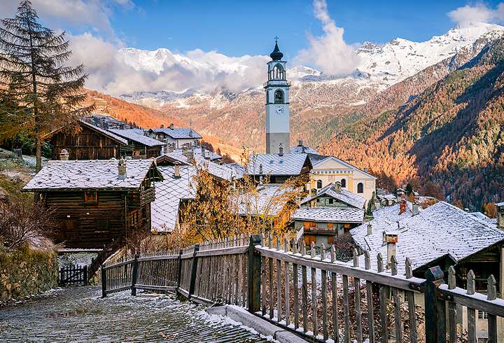 Aamiainen hotellissa. Aamupäivällä tutustumme Aostan kaupunkiin, joka sijaitsee Alppien juurella lähellä Italian, Ranskan ja Sveitsin rajoja. Kaupunki on tunnettu varsinkin herkkukaupoistaan, jotka yhdistavät näiden maiden parhaat vaikutteet. Roomalaiset rakensivat kaupunkiin jo ennen ajanlaskun alkua vahvan