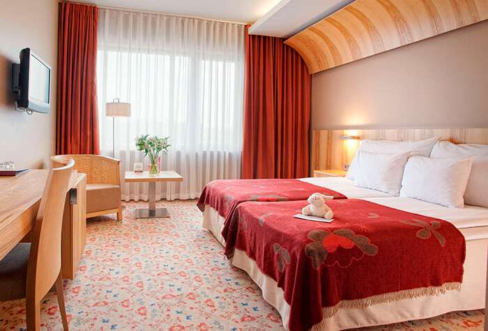 Vuonna 2018 valmistuneesta hotellista löytyy ravintola, baari sekä wellness- ja kylpyläosasto. Hotellissa on myös parkkihalli, jossa hotellin asukkailla on mahdollisuus pysäköidä hintaan 25€/yö. Suosittelemme varaamaan paikan parkkihallista etukäteen.