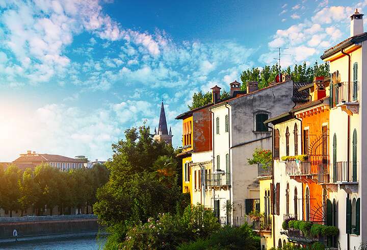 Verona tunnetaan Romeon ja Julian kotikaupunkina, sillä Shakespeare sijoitti tuon surullisen ja romanttisen rakkaustarinan tapahtumat juuri Veronaan. Verona on tunnelmallinen ja kaunis kaupunki, jonka läheisyydestä löytyy myös Valpolicellan viinialue. Veronaa kutsutaan Pohjois-Italian Roomaksi, ja Rooman valtakunnan ajasta muistuttavat mm. Arena-amfiteatteri ja Adige-joen yli kulkeva roomalaisten rakentama silta, Ponte Romana. Veronassa on monia historiallisesti ja arkkitehtoonisesti mielenkiintoisia nähtävyyksiä, kuten Piazza Signorian laidalla olevat Scaligheri-suvun asuin- ja hallintorakennukset sekä Piazza delle Erbeä ympäröivät kauppiaiden ja yksityisperheiden palatsit. Aukion ympäriltä löytyy monia mukavia baareja ja kahviloita, joissa on kiva pysähtyä kahville tai aperitiiville. Ostosten ystävät suuntaavat Arenalta lähtevälle Via Mazzini -ostoskadulle, josta löytyy vaate- ja kenkäkauppoja jokaiseen makuun.