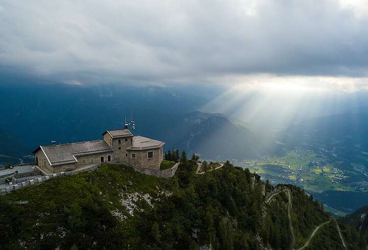Kotkanpesän kuuluisa “kivilinna” sijaitsee lähes kahden kilometrin korkeudessa Kehlsteinvuoren huipulla. Vuorelle vievä tie oli aikanaan vaativa rakennusprojekti, sillä sen oli noustava lähes pystysuoraa vuorenseinämää ja töitä tehtiinkin yötä päivää lähes kaksi vuotta. Viimeinen yli sadan metrin osuus noustaan vuoren sisällä kulkevalla hissillä. Huipulta aukeaa huikeat näkymät ja hyvällä säällä voi nähdä Itävaltaan Salzburgin kaupunkiin asti.