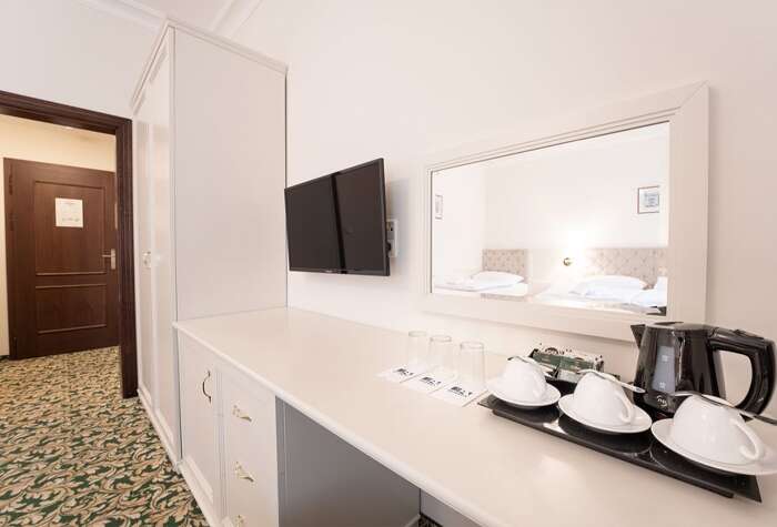 Sijaitsee Karlovy Varyn historiallisessa keskustassa. Bussi jättää/noutaa noin 200 metrin päähän hotellista.