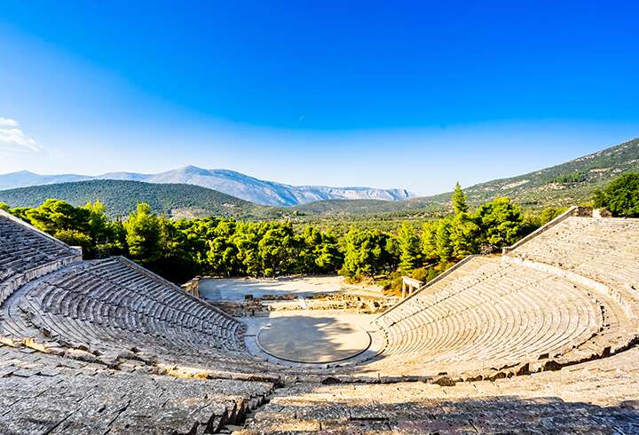 sijaitseva Epidauroksen teatteri on yksi parhaiten säilyneistä antiikin