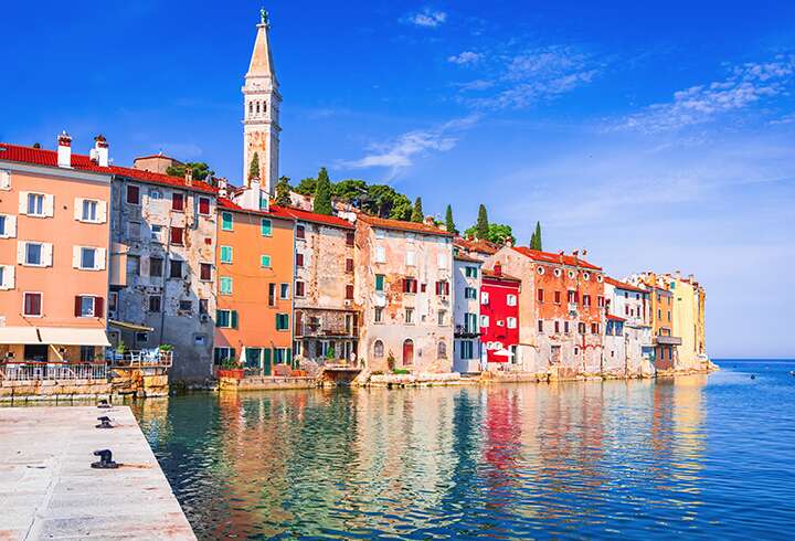 Rovinjin vanhakaupunki turkoosinsinisen meren rannalla on postikorttimaisen kaunis. Sen sokkeloiset kadut, mukulakivikujat ja sataman kalastusveneet luovat idyllisen tunnelman, jota täydentävät kukkaloisto ja pastellinsävyiset talot.