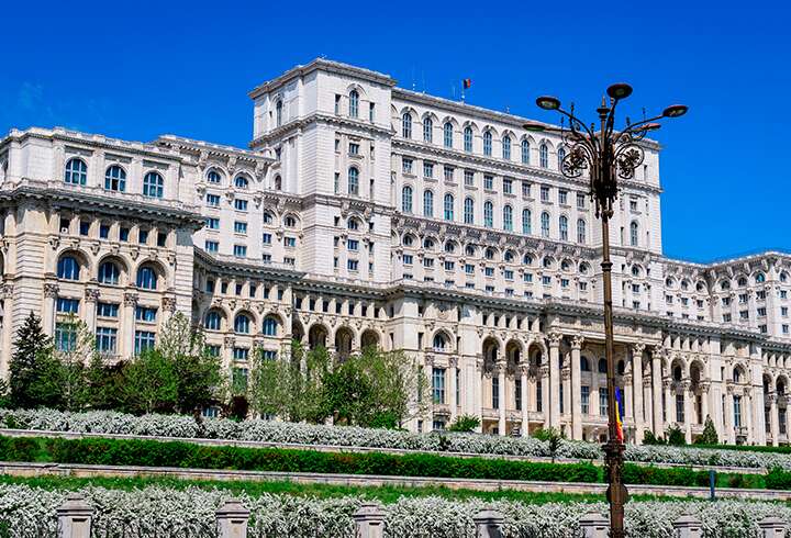 Bukarestin tunnetuin nähtävyys Parlamenttitalo hämmästyttää paitsi mittasuhteillaan myös ylellisyydellään. Sen loisteliaissa saleissa ja edustustiloissa etenevä kierros on ajatuksia herättävä, vaikka käsittääkin vain murto-osan koko rakennuksesta. Palatul Parlamentului syntyi diktaattori Ceauşescun mahtipontisesta ideasta. Hänen tarkoituksenaan oli rakennuttaa perheelleen koti, joka toimisi samalla parlamenttitalona ja edustustiloina. 1980-luvulla käynnistyneiden rakennustöiden myötä paikalta tuhottiin mittaamattoman arvokkaita kirkkoja, luostareita ja synagogia sekä arviolta 30 000 - 50 000 yksityiskotia. Noin 3,5 km pitkän Unirii-bulevardin päässä kohoava monumentaalinen rakennus nimettiin ironisesti Kansan palatsiksi. Kristallikruunuin ja samettiverhoin koristeltuja huoneita on 1100, ja 12:n maanpäällisen kerroksen lisäksi maan alla on vielä useita kerroksia lisää. Suurimmat palatsin saleista ovat jopa 2000 m², ja niiden koristeluun on käytetty yli miljoona kuutiota romanialaista marmoria.