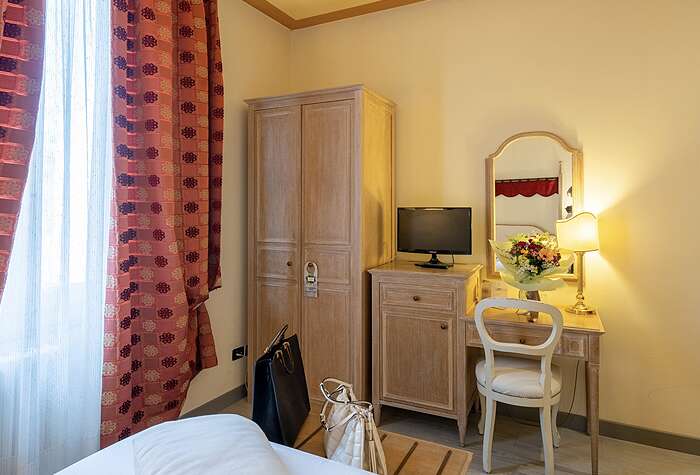 (****) Perinteikäs vuonna 1913 avattu hotelli sijaitsee aivan Montecatini Termen historiallisessa keskustassa. Ravintolat, kahvilat, kaupat ja muut palvelut ovat kävelyetäisyydellä hotellista. Matkaa keskusaukiolle noin 400 metriä ja vanhaankaupunkiin nousevalle funikulaarille noin 800 metriä.