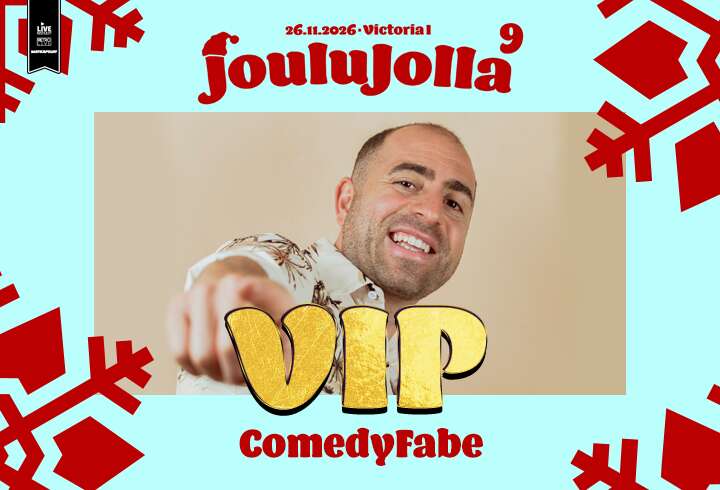 JouluJollalle on mahdollista ostaa myös upea VIP-paketti, johon sisältyy suositun stand-up koomikon show. Jolla 9:lla nauretaan ComedyFaben kanssa. VIP-paikkoja on myynnissä rajoitettu määrä, joten varaathan oman paikkasi ajoissa!
