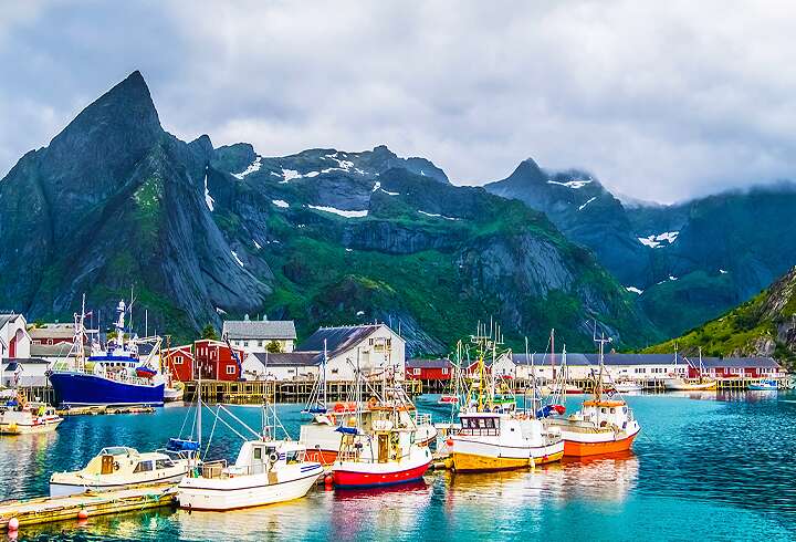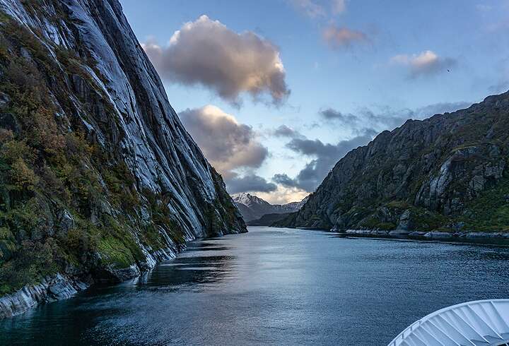 Lofootit ja Vesterålenin saaret tarjoavat ehdottomasti eräitä matkan upeimpia maisemaelämyksiä. Ihastele Risøyrennan kanavan matalia vesiä, jossa hiekkasärkät näkyvät kirkkaan, vihertävän veden lävitse kanavan molemmilla puolilla. Laiva jatkaa matkaansa kapean Raftsundetin salmen lävitse, joka erottaa toisistaan Vesterålenin ja Lofoottien saaristot. Mikäli sää ja aikataulu sallivat, laiva vierailee myös unohtumattomassa Trollfjordin vuonossa, jossa sileät kalliot miltei koskettavat laivan kylkiä ja kapteeni tekee tarkkaa työtä kääntäessään laivan vuonon pohjukassa. Illalla saavumme Svolværiin, jossa turskan kuivaustelineet ja viehättävät, kalastajille alun perin tarkoitetut rorbu-tyyppiset majoitustilat näkyvät jo heti satamaan tullessa ja kertovat saarten historiallisesta elinkeinosta kautta vuosisatojen. Svolværissä on aikaa käydä drinkillä Jääbaarissa tai käydä kävelyllä ja kuvata jylhiä ympäröiviä vuoria, jotka eroavat Norjan muista vuorista teräväpiirteisillä huipuillaan.