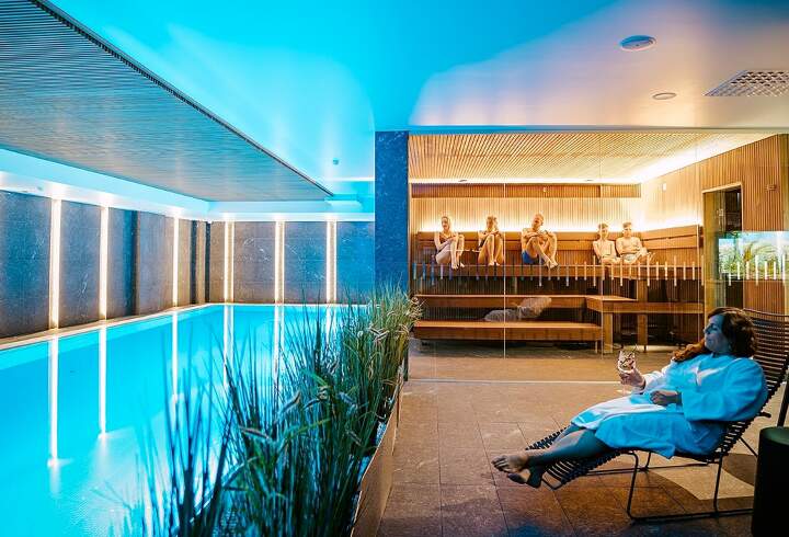 Kylpylän sauna- ja allasosastolta löytyy viisi erilaista saunaa ja viisi erilaista allasta, jotka tarjoavat monipuolisia rentoutumismahdollisuuksia.