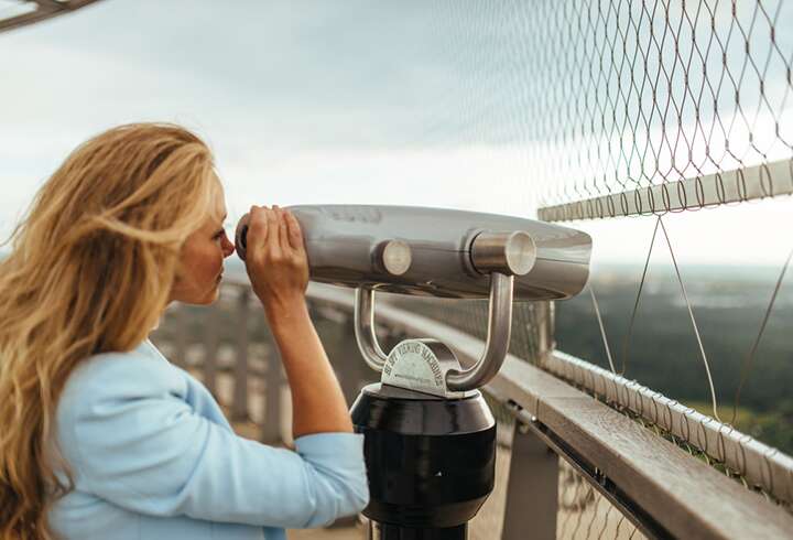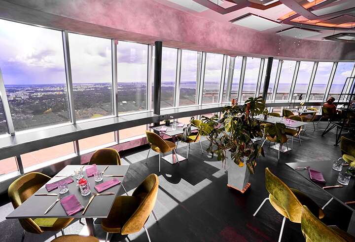 ylhäältä käsin. Nopea hissimatka vievät sinut huikeisiin korkeuksiin vain minuutissa. TV-tornin pihalla on